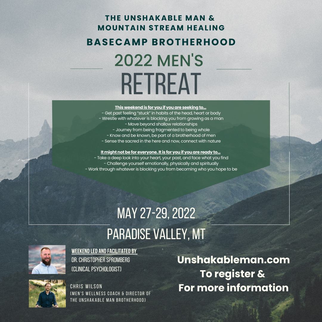 We are excited to announce The Unshakable Man & Mountain Stream Healing – Basecamp Brotherhood – 2022 Men’s Retreat!
