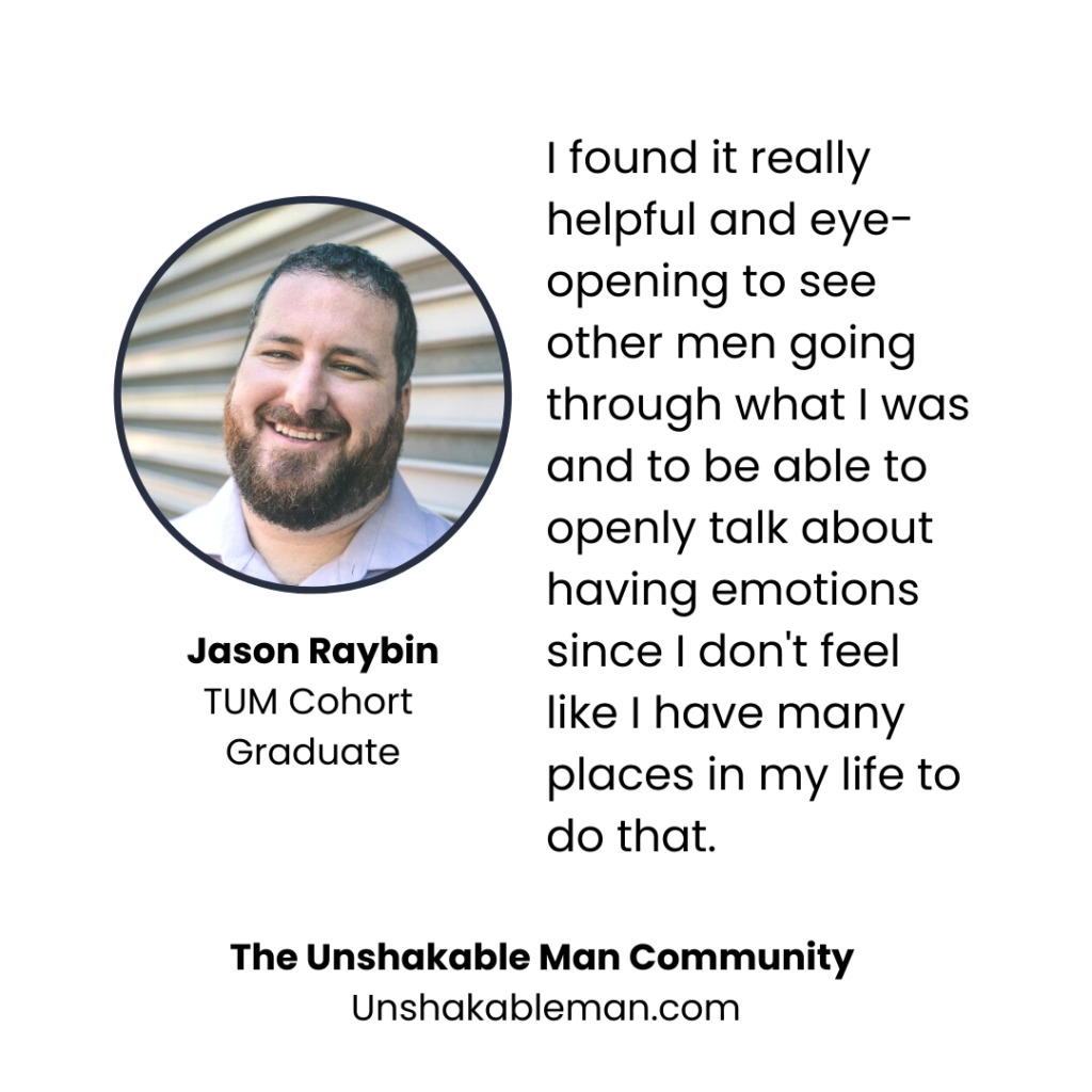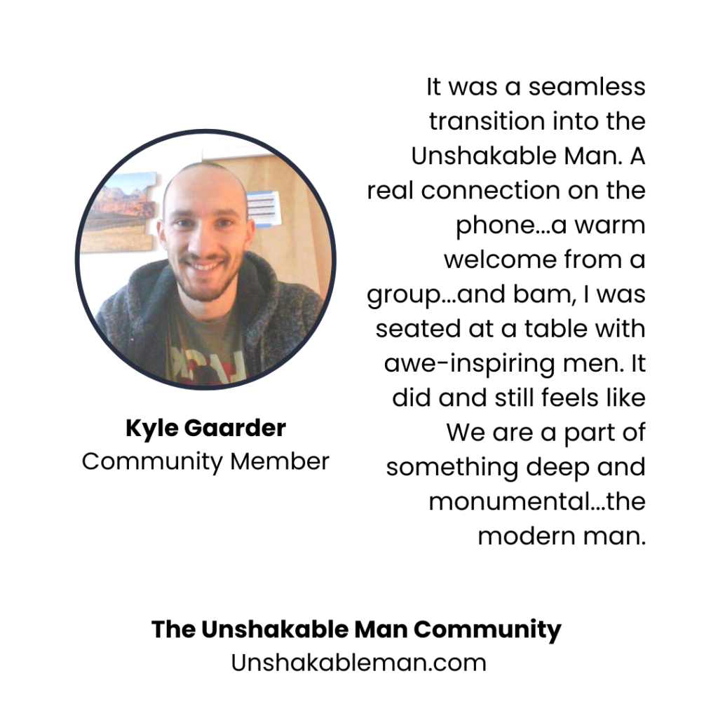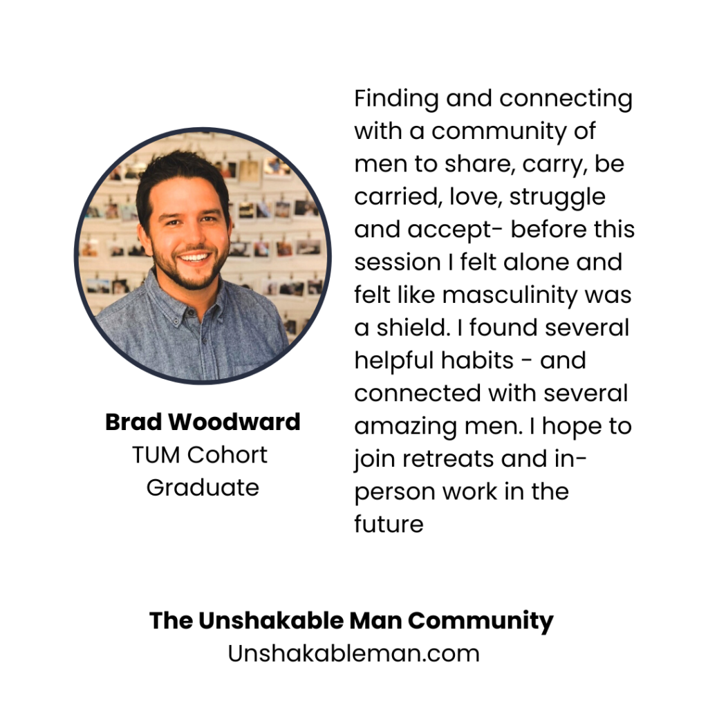 Human connection on any level is tough, and as a guy, it was hard to find emotional guidance and support. The Unshakable Man is different from other groups I’ve been in because it’s tailored to remote interaction. It is so powerful to connect with men around the world on a deeper level, and the facilitators’ depth of knowledge on psychology, philosophy, and relationships helps to ground each moment. Through The Unshakable Man, I’ve learned that empathy and introspection in the company of fellow men are not only important but vital for me and my relationships.
